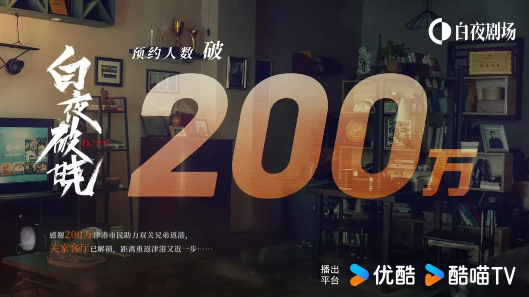消息发布当天,话题#白夜破晓原班人马重归#迅速冲上微博热搜榜。不到半年,这部剧在优酷站的预约量就超过了200万。