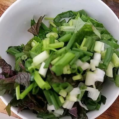 2、生姜切碎;大蒜去皮,拍扁,切碎;生姜洗净切花;紫苏叶和假叶洗净切碎