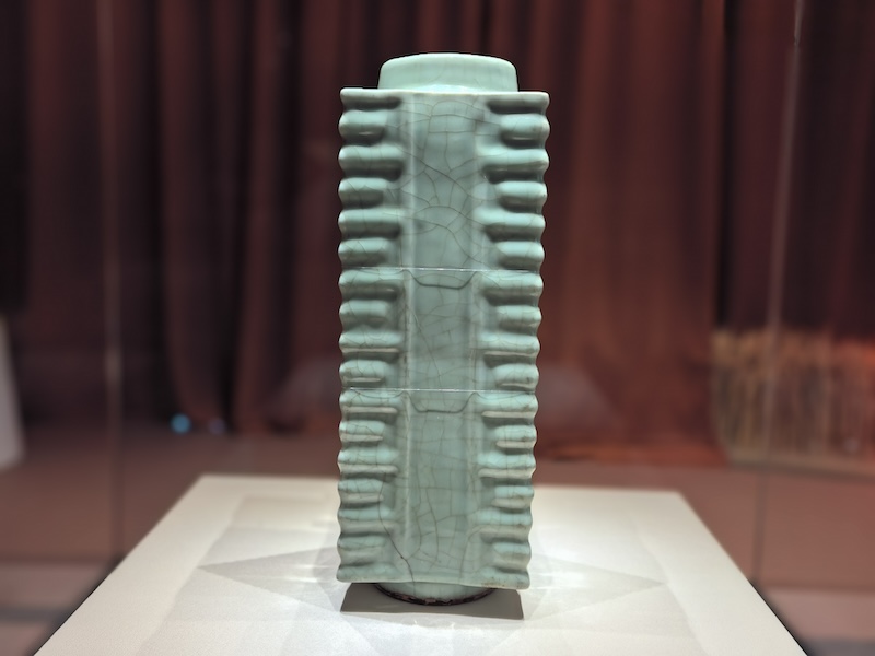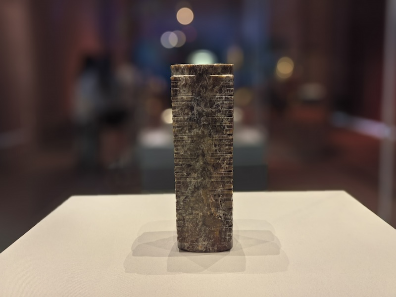 第一个独立展示柜是良渚文化的典型器物——玉锻。