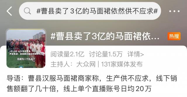 曹县卖了 3 亿元的马面裙依然供不应求。