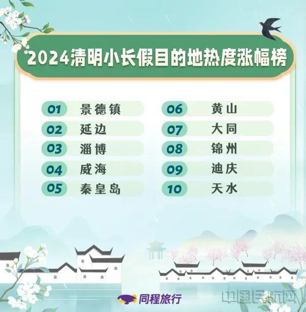 清明小长假期间,淄博旅游热度同比上升超 200%,在涨幅榜上排名第三