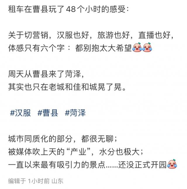 然而,也有非购物意向的自驾游网友对曹县表示失望。
