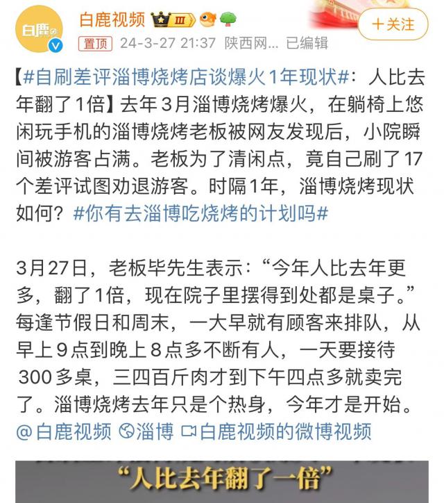 但是又有声音说,淄博一家网红烧烤店“人比去年翻了一番”