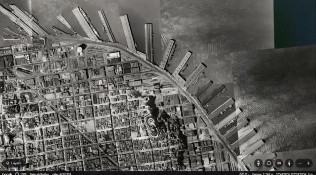 Google Earth 能“回到过去”,比较历史照片和当前照片。谷歌公司在博文中进行了比较 1938 年与 2024 看看这个地区的地理变化有多大,旧金山。
