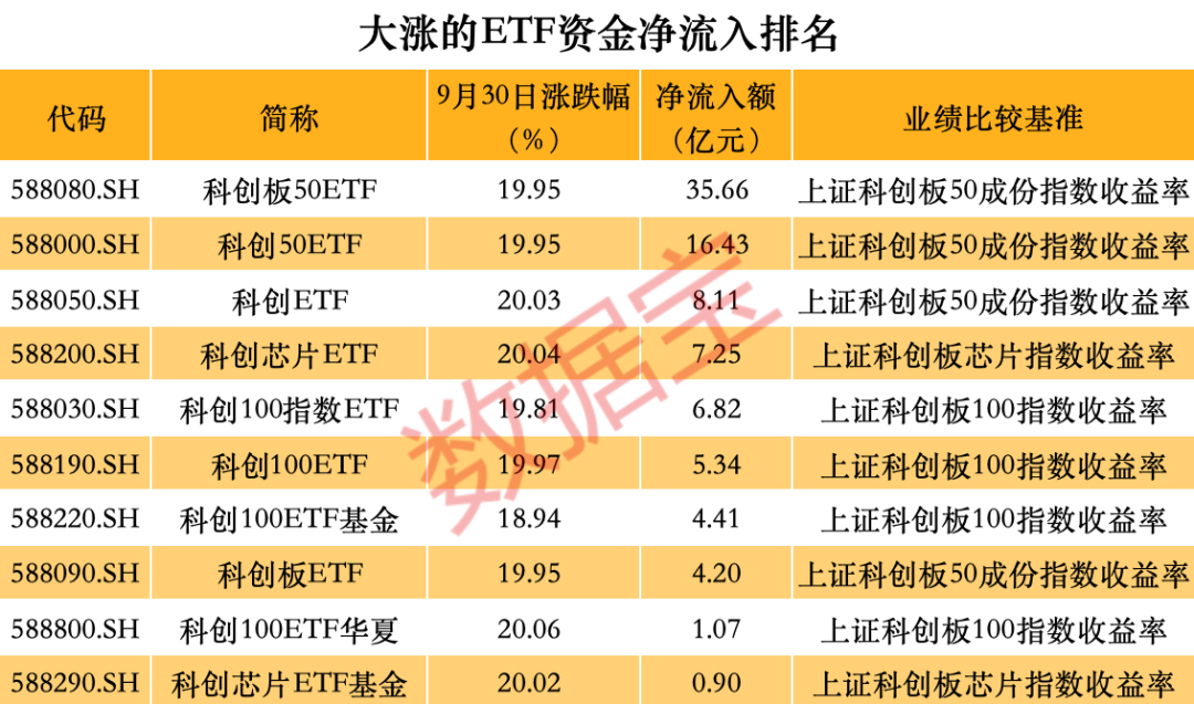 ETF涨幅超过15%,科创板50ETF和科创50ETF资金净流入均超过15亿元,科创ETF资金净流入均超过15亿元。、ETF,科创芯片、ETF等科技100指数吸金均超过5亿元。