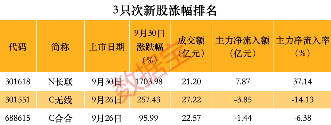 相对来说,次新股参与条件较低,而部分次新股没有涨跌限制,导致单日涨幅超过10%,这在牛市中是很常见的。节前部分次新股已受到资金青睐,9月30日上市的长联科技首日上涨超过17倍,9月26日上市的两只次新股在节前最后一个交易日均上涨,前者上涨257.43%,后者上涨95.99%。