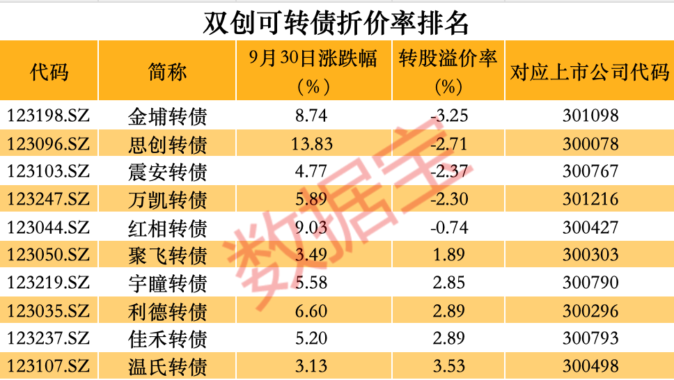 转换溢价率低的双创股票可转换债券有望在假期后弥补。数据显示,创业板5只股票可转换债券的溢价率为负,金埔可转换债券的转换折价率最高,超过3%。