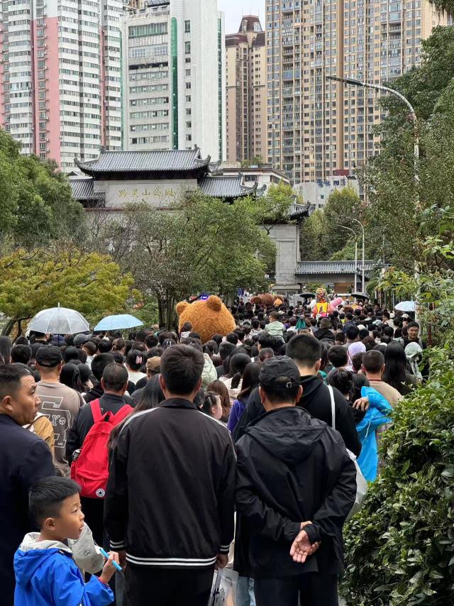 10 月 1 国庆假期的第一天,黔灵山公园人山人海,来此打卡的游客络绎不绝。