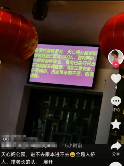 有人晒出了景区的临时通知。通知显示,由于游客数量超过5000人,公园拥挤。为了保证游客的安全,景区只能实行临时交通管制。