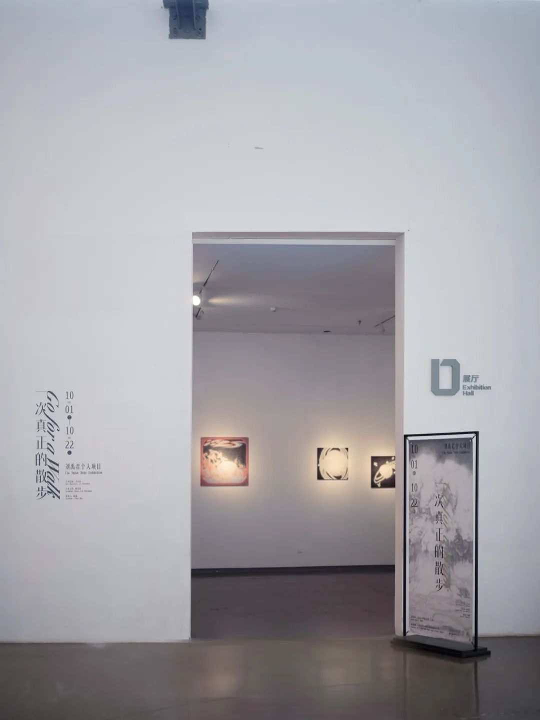 在展览中,《一次真正的散步》作为展览的名称,也是最新创作和展览的主题。刘禹君说:“这个展品是根据场地中的一面弧形墙来创作的。和其他作品一起,我试着给大家创造一种在场的真实感觉。在图片中,如果你在这里散步或漫游而不是在这里,时间一定会在损坏的光源中受损。没有时间的时候,我们真的会散步,也就是散步。”