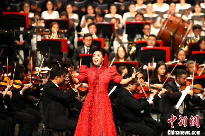 中国女高音演唱家王丽达在中国爱乐乐团大型交响乐会现场演唱。中新社记者刘占昆 摄