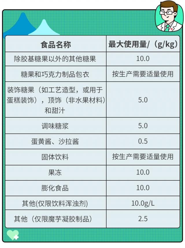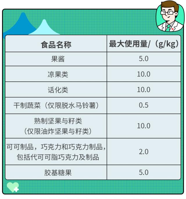 我们国家也允许使用食品添加剂。国家标准规定的二氧化钛在食品中的应用范围和用量如下: