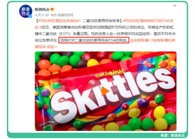 事实上,美国客户向法院提起诉讼,称玛氏彩虹糖中的二氧化钛(E171)含量过高,有导致人体 DNA 发生变化的风险,也会对大脑等器官造成伤害,对肝脏和肾脏造成伤害。