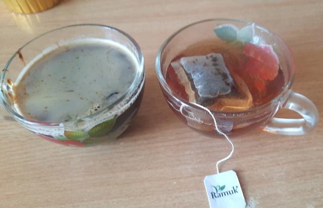 IRP 中间的茶是普通的茶。虽然不是特别香,但是味道不错。咖啡有烤咖啡豆的香味,有明显的苦味。作者试图用奶精来缓解,但效果并不好,奶精的味道几乎消失在咖啡中。