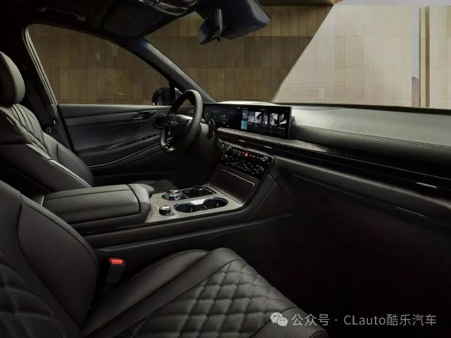 外观部分,新 SUV 搭配黑色外观和黑色格栅、保险杠进风口、标志、车顶行李架和保险杠装饰条,尾门上使用的深色金属 Genesis 字母进一步提高了整体效果,甚至大灯外框也是黑色的,最大限度地减少了其它颜色的影响。