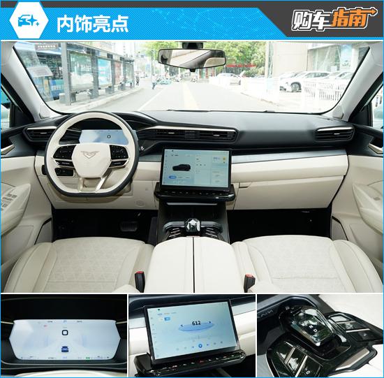 在内饰方面,凯翼昆仑 iHD 选择12.3的非对称布局 14.6英寸全液晶仪表盘与空调风口位于同一平面 英尺悬浮式中控面板位置相对较低,略微向驾驶员侧倾斜。中控面板下面还配有一排触摸按钮,整体层次感鲜明。细节方面,三辐多功能方向盘采用双配色设计,电子换挡杆采用水晶切割风格,营造出优秀的高品质质感。