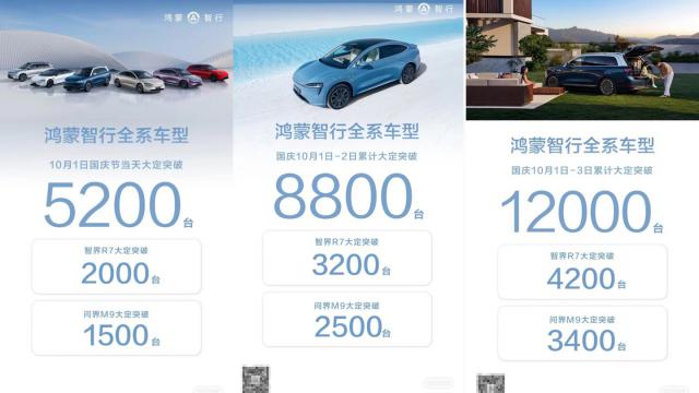 鸿蒙智行 10 月 1 日-3 日积月累的大定突破 1.2 万台