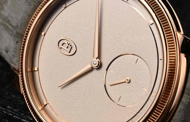 表盘的设计也体现了帕玛强尼对细节的极致追求。表盘的微水泥质感是通过贵金属和特殊混合物的结合,然后手工打磨而成。这种独特的质感不是通过简单的喷砂技术来实现的,而是由制表大师手工打磨而成。