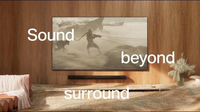 Arc Ultra 条形扬声器配置 14 个 Sonos 驱动单元的设计,Sound Motion 支持低音炮和带波导的高音单元, 9.1.4 空间音频感觉。
