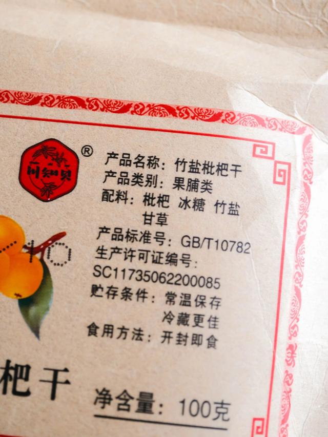 除枇杷外,配料表只有:冰糖、竹盐、甘草。