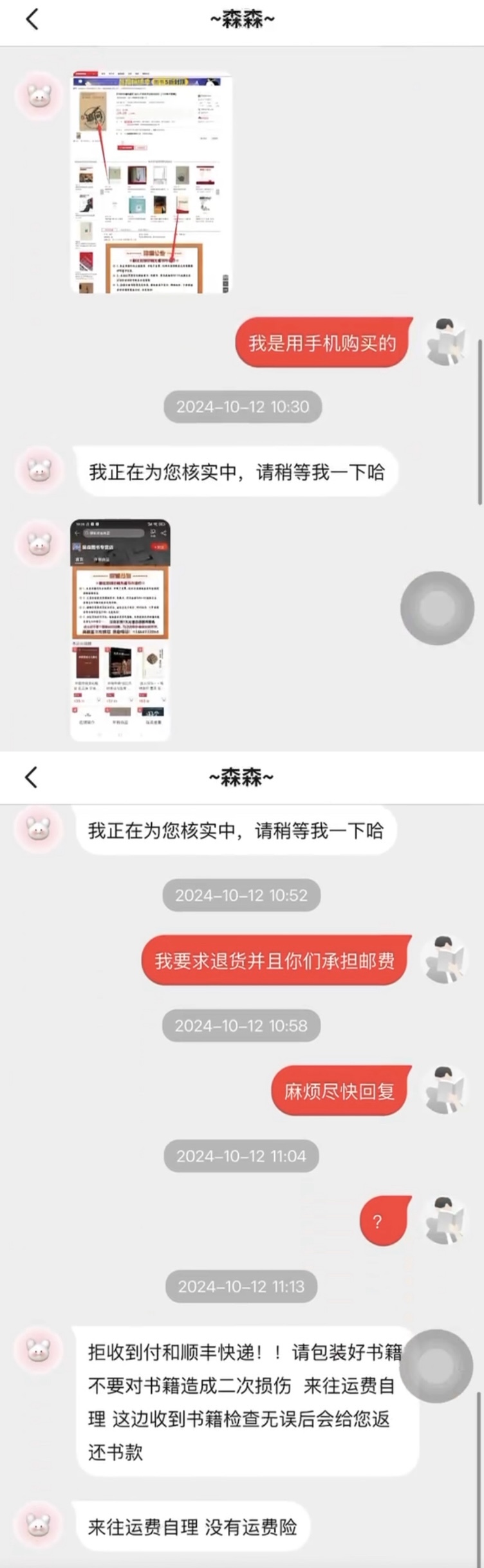 发现买了旧书后,段先生立即申请退货,但他虽然可以申请退货,但是需要自己承担邮费。