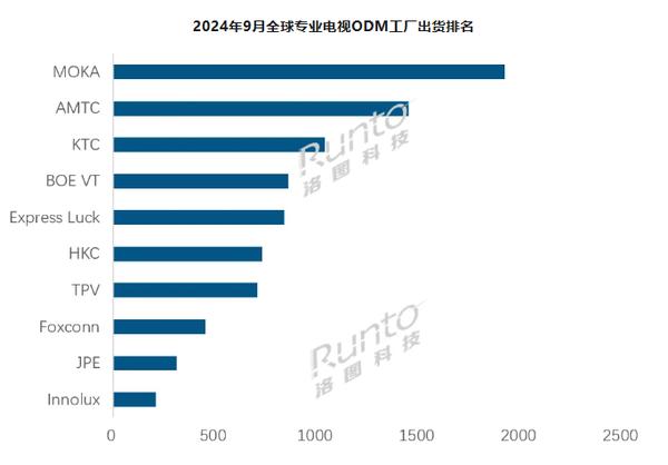 【CNMO 根据洛图科技新闻(RUNTO)数据,2024 年 9 本月,全球电视代工市场持续增长,北美电视市场旺季备货需求持续释放,中国市场升级版“新旧置换”制度的乐观预期,以及头部品牌外包订单的增加,共同推动了这一增长。