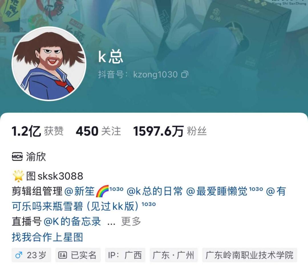 毕竟从粉丝数量来看,即使是完美的和辉同行,也用了4个月的时间,从零到1900万,比起k,一个月1000万还要难。综上所述,这种增长速度很难用标签中的“抽象”来形容。如果直接对比,k的粉丝更年轻,更叛逆,不同于小杨哥粉丝的流行。k的粉丝更注重他们的“玩梗”能力。