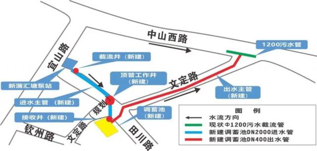 作为已建成的合流系统,新蒲汇塘排水系统承担着重要的排水任务。它的经营范围从东端华山路到西及水溪北路东侧,西至轨道交通。 3 号线,南起中山西路以南,北至淮海西路向北,总服务面积。 2.60 平方千米。"目前新蒲汇塘的一个合流泵房已经在这个服务范围内建成,设计重现期为暴雨。 1 年一遇。“据区水务局相关负责人介绍,由于目前蒲汇塘排水系统的截留设施规模只能承担约定。 1.5mm 初雨截流,不能满足地区面源污染的控制要求,需要进一步提高到 11mm。另外,作为长江警示片的经典案例,新蒲汇塘泵房放江污染问题都凸显了新建初雨调蓄池的重要性和紧迫性。