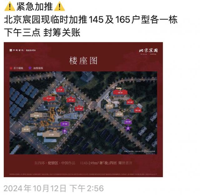 中午 12 点,北京宸园再次确定紧急加推。 32 套 165 平米房型。