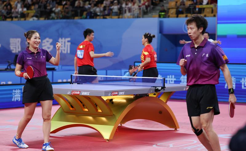 在内蒙古自治区鄂尔多斯市举行的2024年全国乒乓球锦标赛中,33岁的刘诗雯与29岁的林高远合作夺冠。
