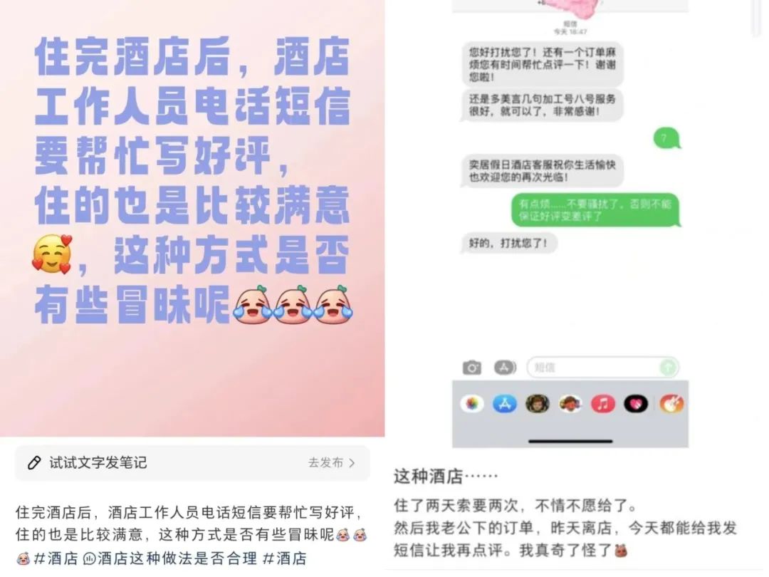 打开小红书,可以找到上千条互刷好评的求助帖,甚至还有酒店刷好评全过程的保姆级教程。