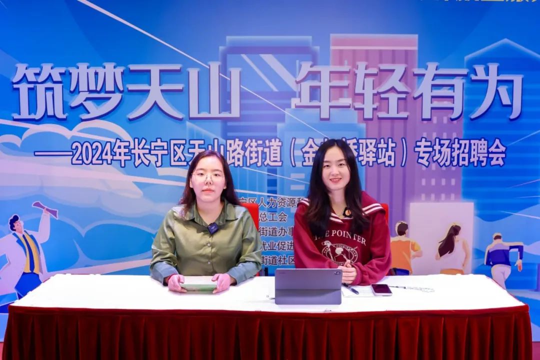 这是上海长宁天山路街道的专场招聘会,线上线下同步进行。