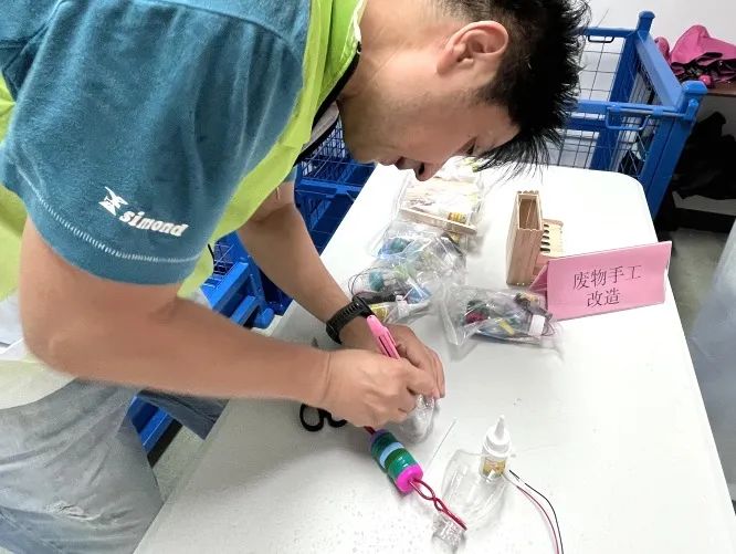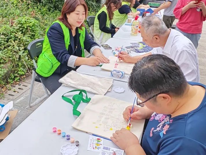 居民们通过“环保临摹”和“废物手工改造”摊位,体验到了“废物利用”的“奇妙之旅”。现场,消毒后的塑料瓶变成了罐装清洁液的“小帮手”,干花和枯叶变成了独特的笔记,环保帆布袋变成了居民施展才华的画板,冰淇淋棒和矿泉水瓶分别变成了钢琴装饰和小台灯...每一件创意作品都体现了居民对环保的热爱,传达了绿色生活的理念和美好愿望。