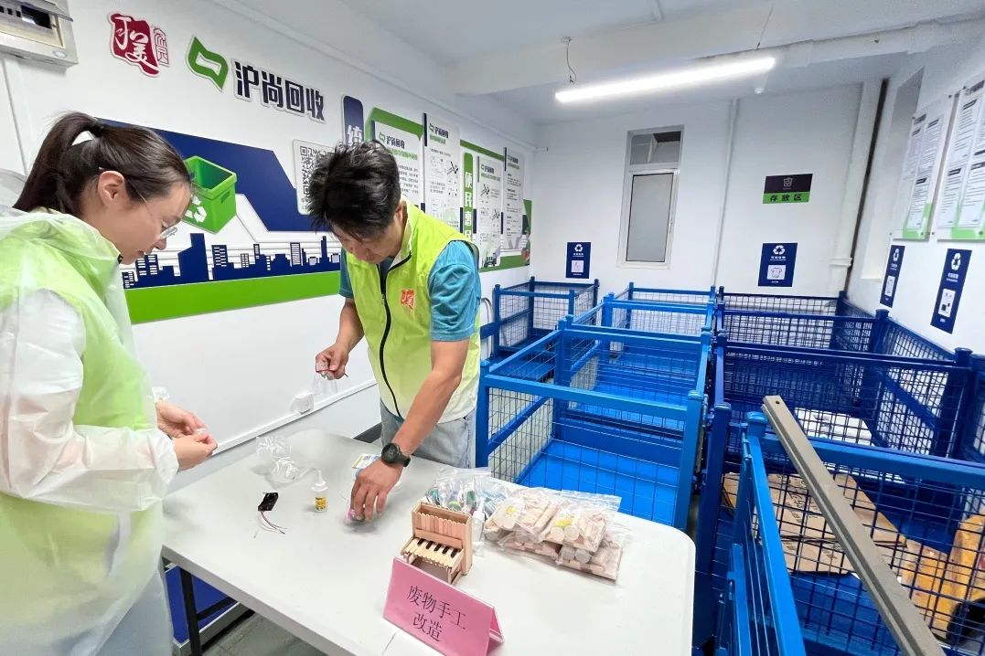 江苏路街月惠民服务点位于江苏路480小区。据相关负责人介绍,在2023年“垃圾分类精品示范社区”建设的基础上,今年该点优化完善了可回收物交易区,选择了智能回收箱的组合模式,设置了再生产品展示、科普宣传墙等场所,引导居民树立生态文明理念,通过开展环保活动,培养绿色生活方式。