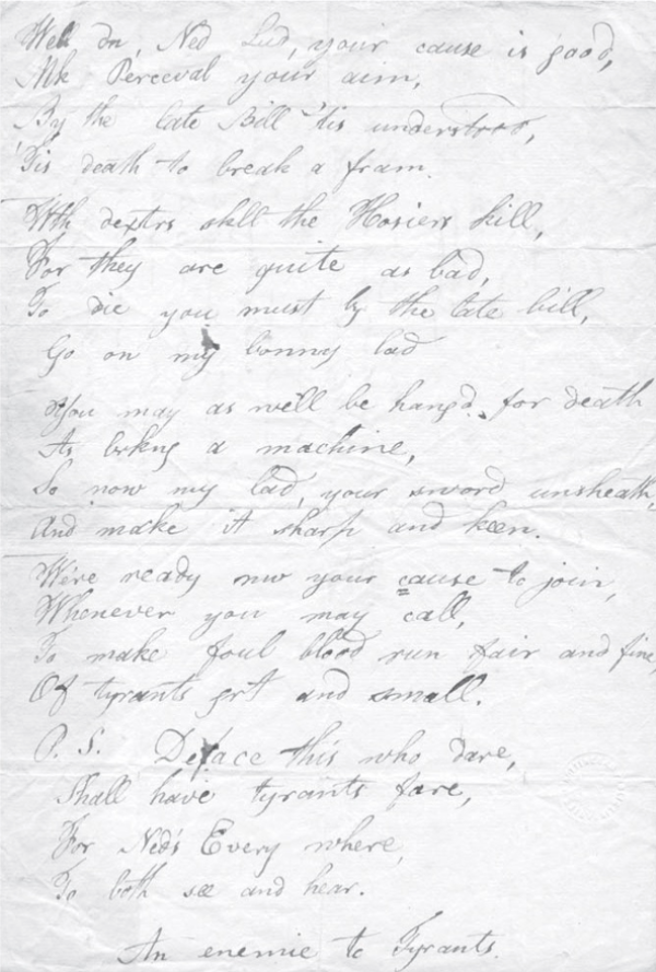 (Kevin Binfield ed., Writings of the Luddites, Johns Hopkins University Press, 2004, p. 15)