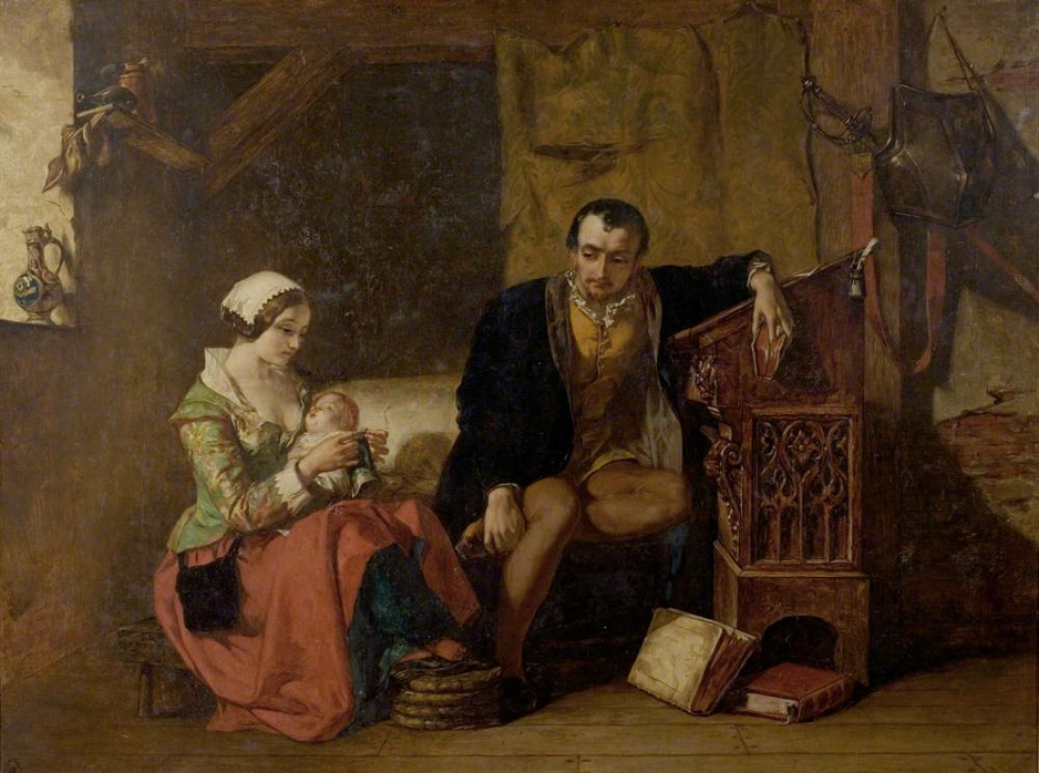 阿尔弗雷德·埃尔摩(Alfred Elmore, 画《织布机的起源》1815-1881( The Origin of the Stocking Loom),诺丁汉城市博物馆和美术馆(Nottingham City Museums & Galleries)藏