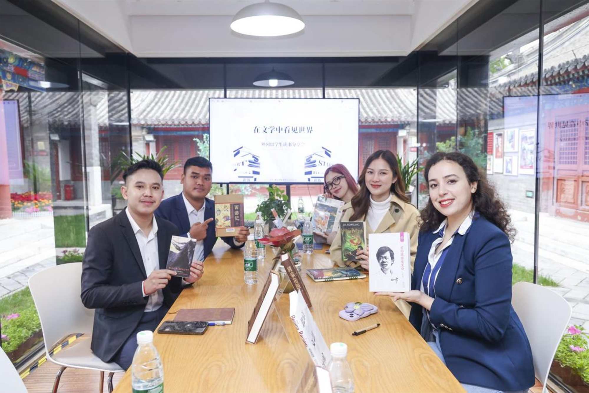 在“文学中看世界”读书分享会上,十月文学院的留学生一起读好书。