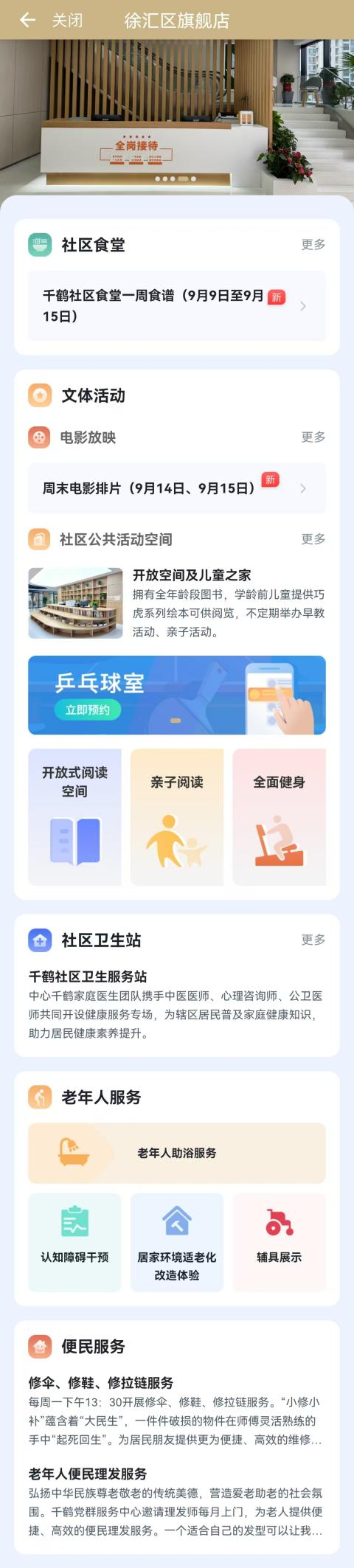除了乒乓球室的预约,还可以在平台上查阅更多有趣丰富的“生活盒”内置功能,如千鹤社区食堂一周菜单、邻里汇周末电影放映安排、方便维修、老人剪发等服务信息,“解锁”社区卫生站、老人服务、亲子阅读等。据悉,田林街道将继续利用数字平台,提高社区服务的覆盖面和质量,努力为社区居民创造更加便捷温馨的社区生活空间。