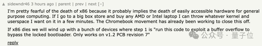 有些人甚至担心,放弃x86意味着放弃对通用计算硬件的控制,在被ARM控制之后,它可能会变得更加封闭。