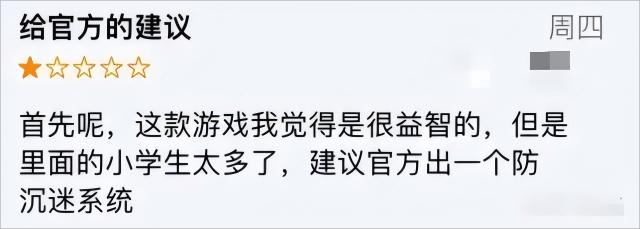 有网友表示,「这是一款益智游戏,但是小学生太多了,建议官方增加防沉迷的幅度。」。