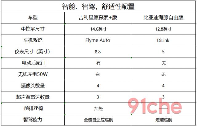 通过对比可以看出,星志的优势在于智能设备、更高的输出功率、更快的充电效率和更高的性价比。比亚迪海豚的优点是续航能力更大,后排空间更大。