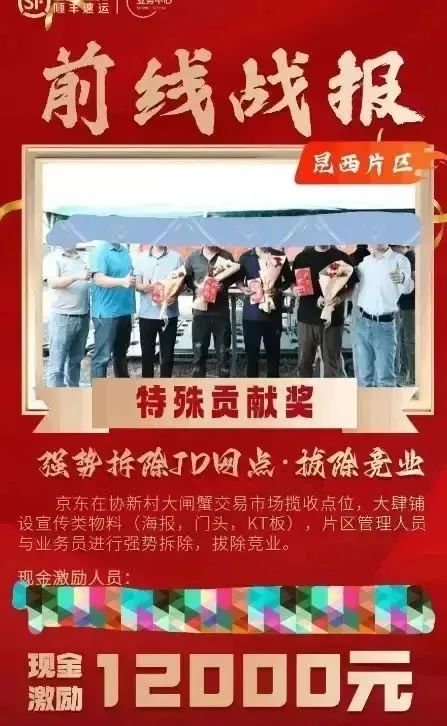 最近,JD.COM也遇到了类似的事件,在破坏京东揽收点后,顺丰员工居然获得了12,000元的奖励。