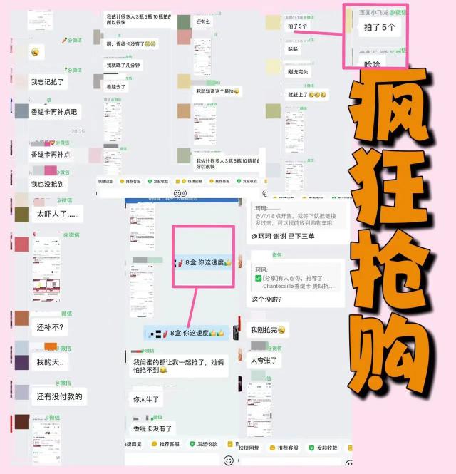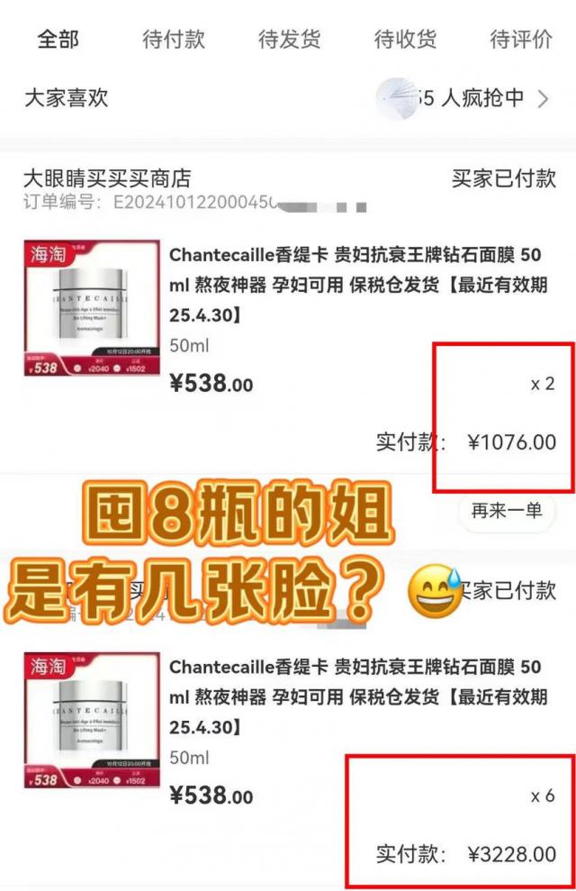 难怪香缇卡钻石面膜今晚开秒,老业主经常一个人买。 4 瓶 5 瓶 8 瓶子,我在群里看傻了。