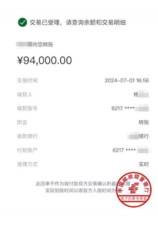 7 月 1 每天,交易如期完成,对方将剩余的交易 94000 余额打到杨女士的银行卡上。我以为一切都结束了,但第二天,杨女士意外发现她的银行卡被青岛警方冻结了。原因是 94000 元为诈骗款。