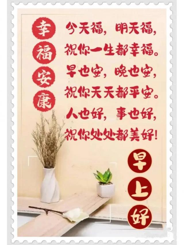 早上一起看短信,送问候和思念,话不多,心里暖暖的,心里记得亲情和友情。问候似乎很淡,承载着彼此的思念;祝福似乎很简单,蕴含着无限的友谊!每天送三件宝物:快乐、幸福、健康。早上好!