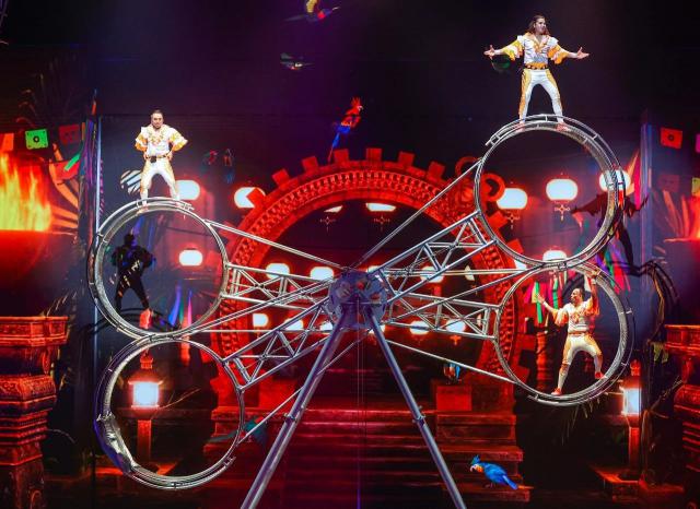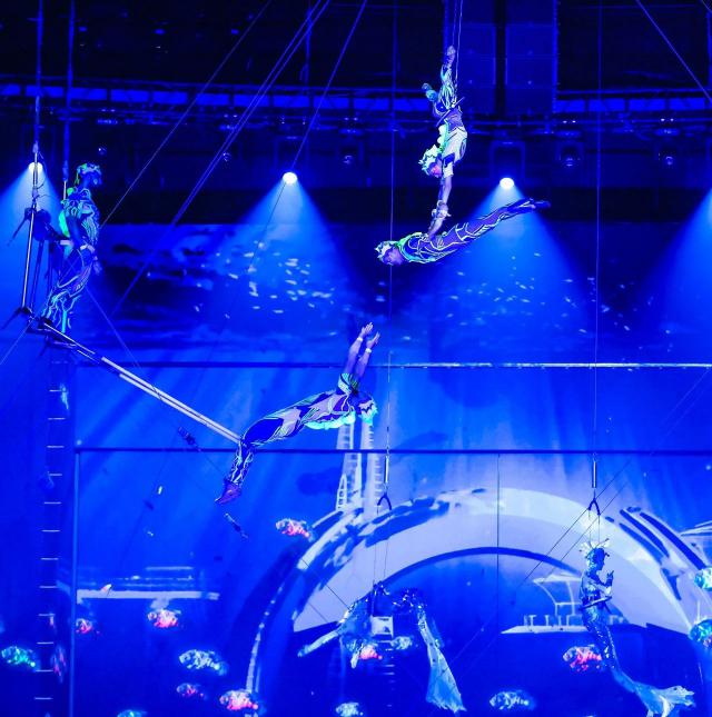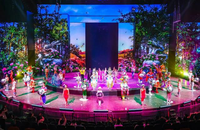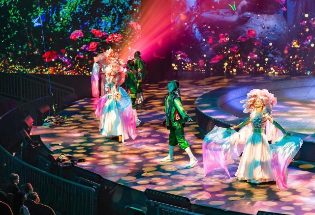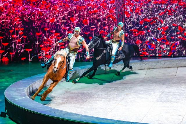 表演分为九个场景,每个场景都呈现出一个独特的故事,从俄罗斯冒险的神秘,皇家舞会的华丽,金色阿拉伯的优雅,到拉丁狂欢节的热情和荒野丛林的惊心动魄。尤其是海盗船,与演员和观众的“零距离”互动,呈现出一个梦幻般的世界。