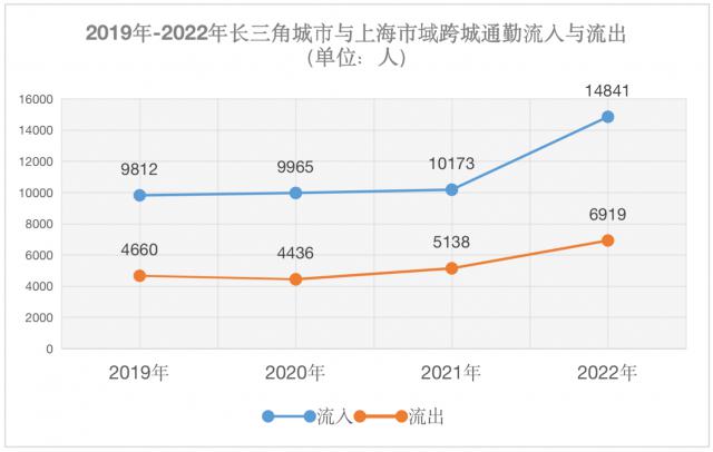 但是相比之下,我们可以发现,近年来,周边地区流入上海的通勤人数约为 1 一万人,而从上海流出的人数只有一万人。 5000 人左右