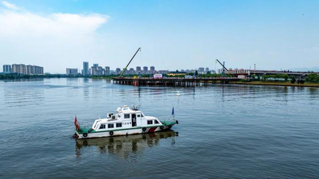 "大桥横跨杭永运河姚江段,每天来往船只高达 70 多次吊篮施工难免影响船舶通航安全。宁波三江口海事处姚江海巡执法大队检查人员表示,为确保水工水域航运安全,宁波海事部门在吊篮施工前及时开展航运安全指导,不断保障桥梁建设顺利进行。