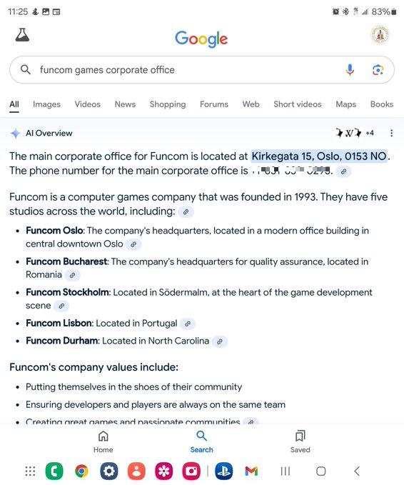 有些网民发现,谷歌 AI 实际上,这是一个错误的商业平台。 LeadIQ 上面有这个电话号码,谷歌应该从 Funcom 公开联系信息页面获取正确信息。