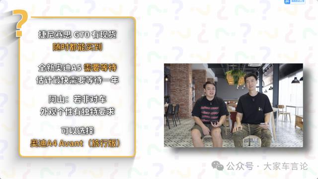3、捷尼赛思 G70 猎物和奥迪新 A5 猎装二选一,新 A5 参照 A4 旅游落地得 35,G70 落地 30,但是又担心捷尼赛想跑几年,售后维修麻烦,买车便宜。 5w 由于小失大,请指导